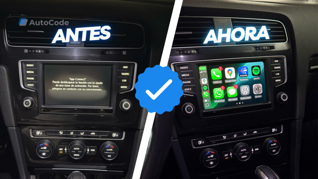Con este servicio activamos App-Connect de forma remota para que puedas disfrutar de Apple CarPlay o Android Auto directamente en la pantalla original de tu coche.